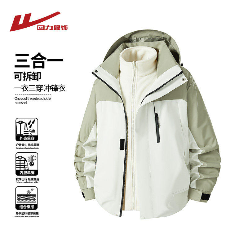 回力三合一可拆卸冲锋夹克男春秋季2026新款户外三防工装风衣外套