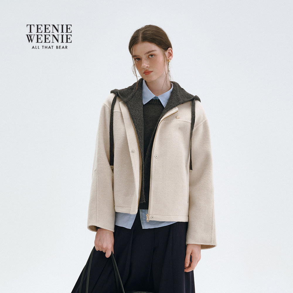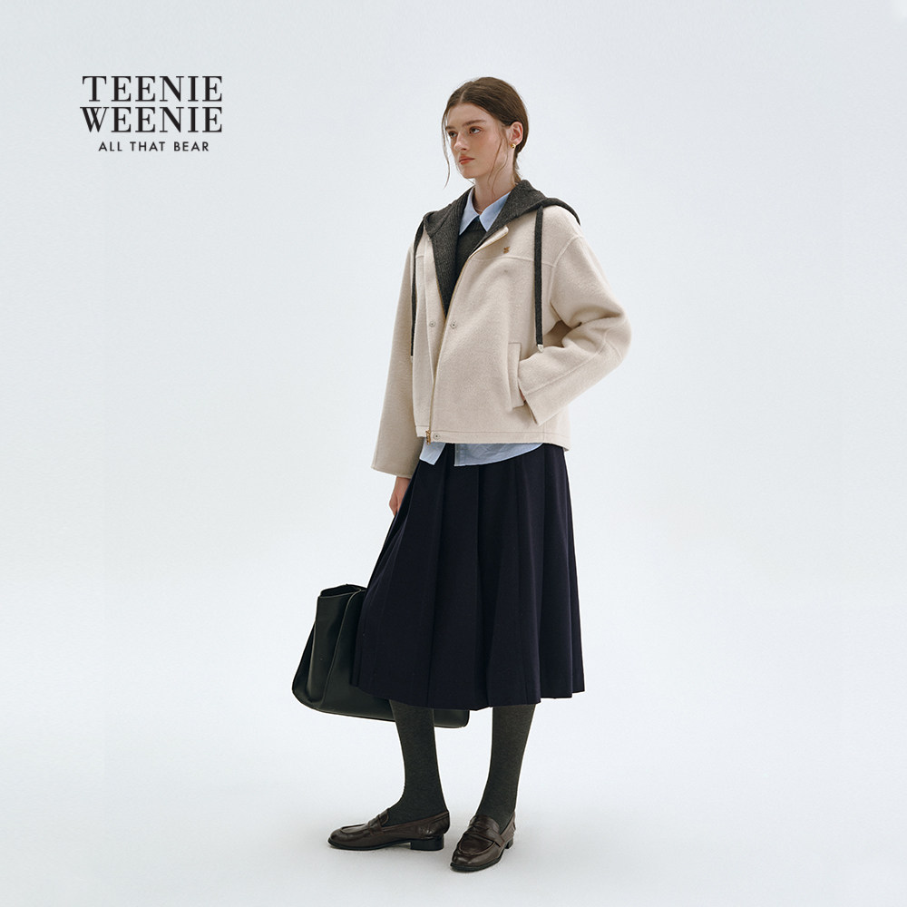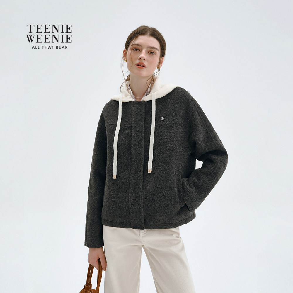 【轻绒智型通勤大衣】TeenieWeenie小熊女毛呢外套25冬连帽大衣