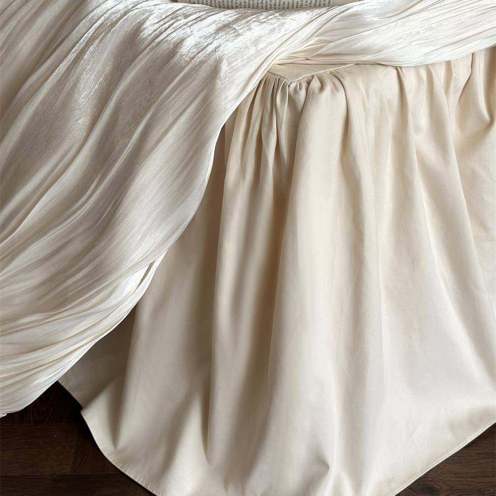 法式奶油风四件套全棉贡缎磨毛纯色花边被套加厚全棉床裙秋冬床品
