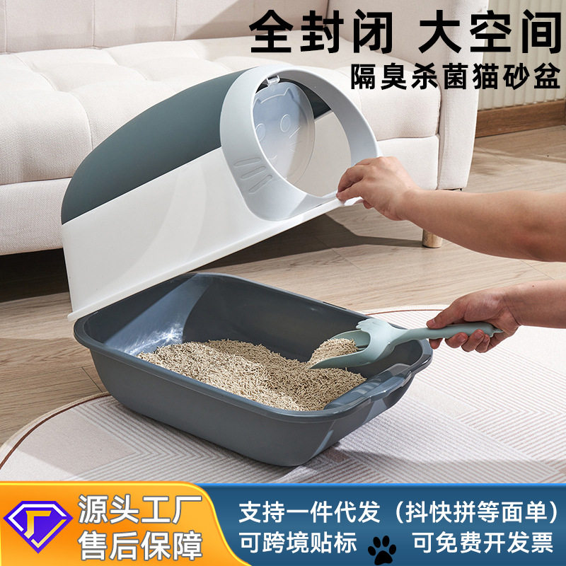 猫砂盆超大号防外溅全封闭厕所防臭猫屎盆批发工厂直供猫砂铲貓砂