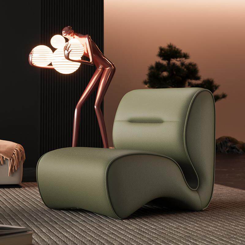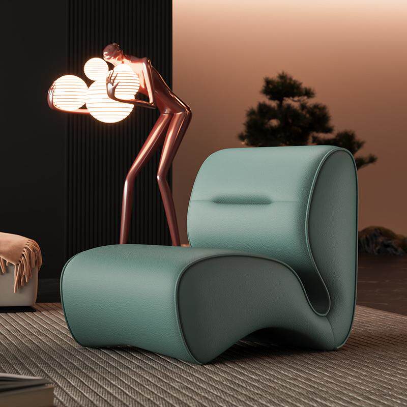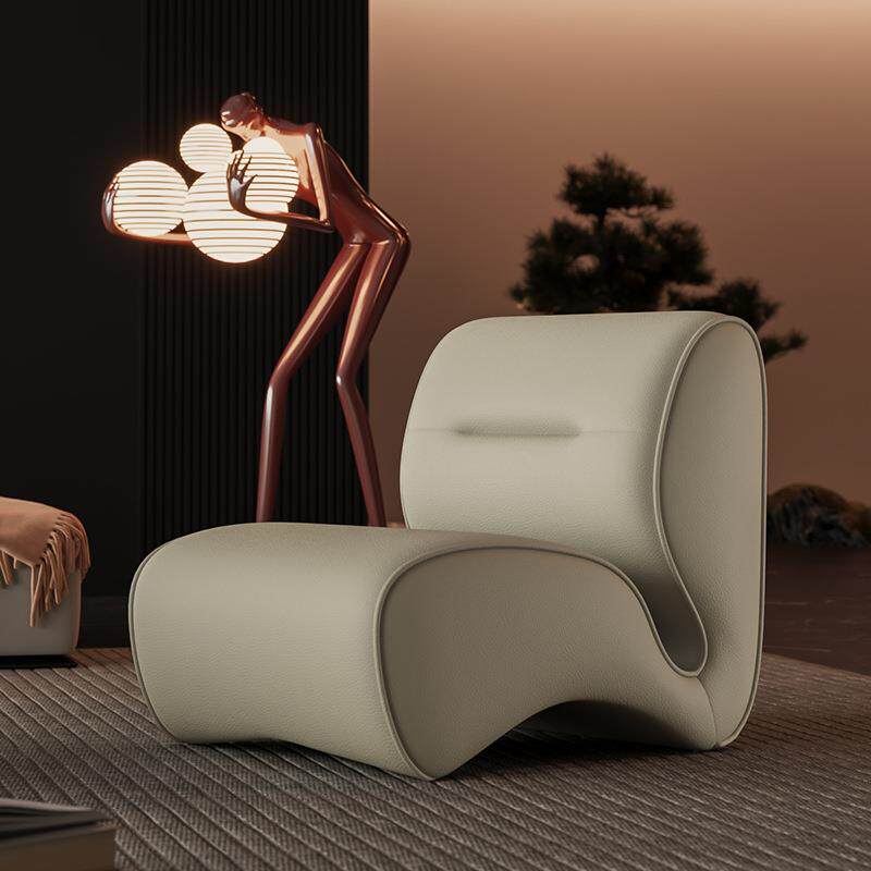 意式单人沙发椅轻奢皮艺小户型懒人创意弧形客厅酒店设计师沙发椅