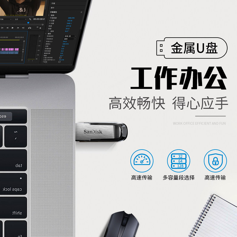 闪迪高速酷铄USB3.0闪存盘 CZ73金属优盘16G加密高速电脑U盘
