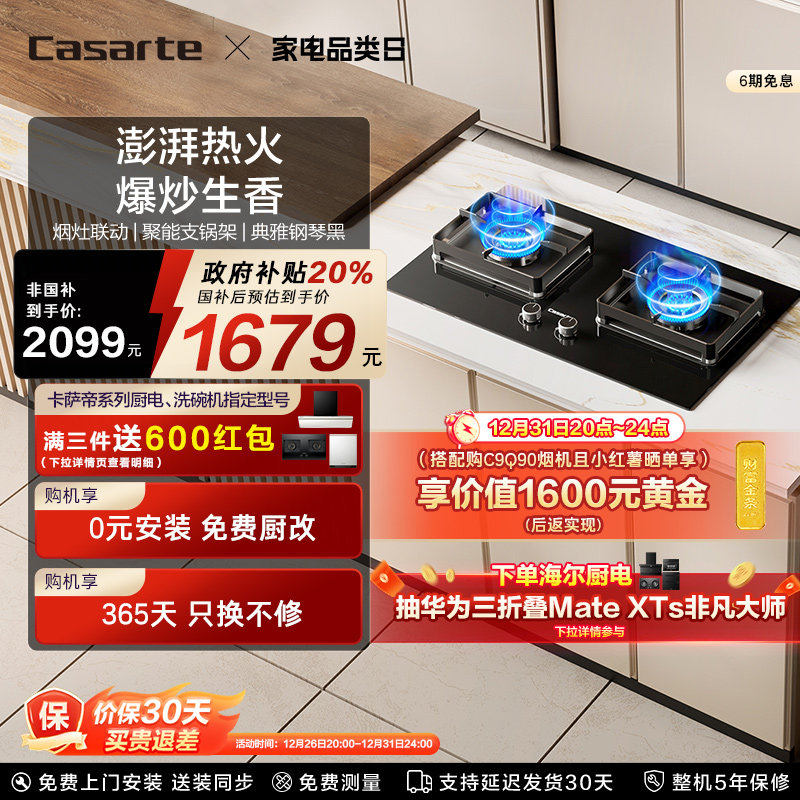 新品卡萨帝燃气灶揽光小炫风煤气灶炉家用厨房双灶台天然气灶CDZ3