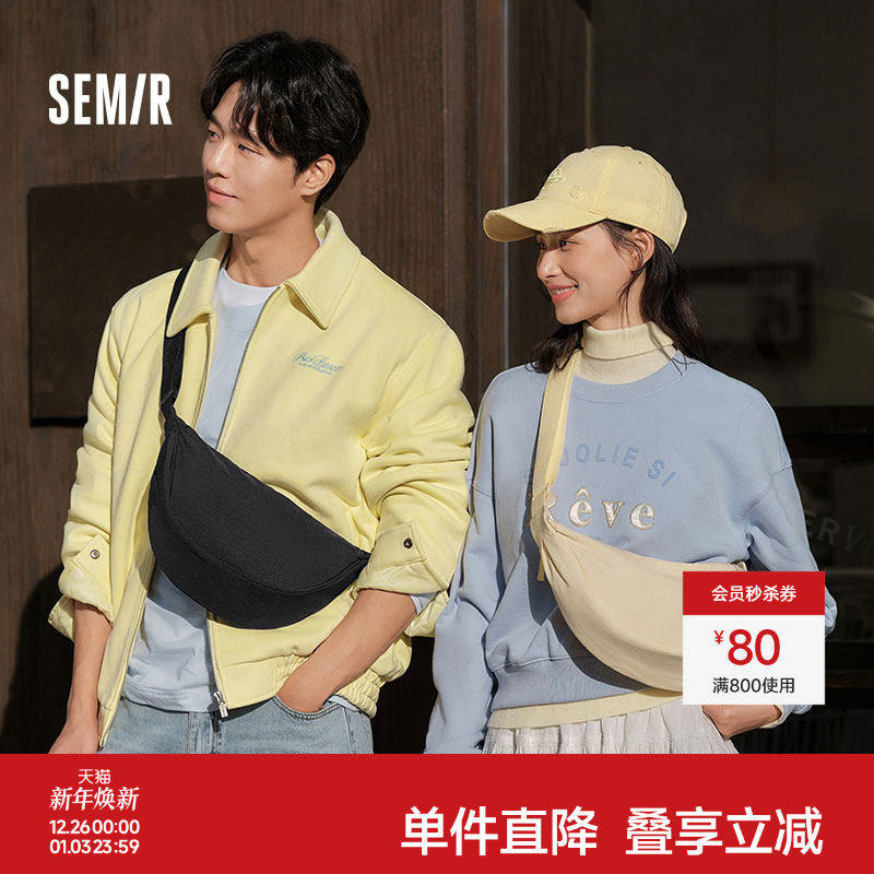 森马斜挎包男女饺子包纯色简约通勤胸包时尚休闲风背包情侣斜挎包