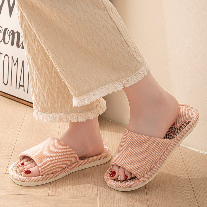 买1送1亚麻拖鞋女士情侣家居一对静音防滑家用招待客人棉麻拖鞋男