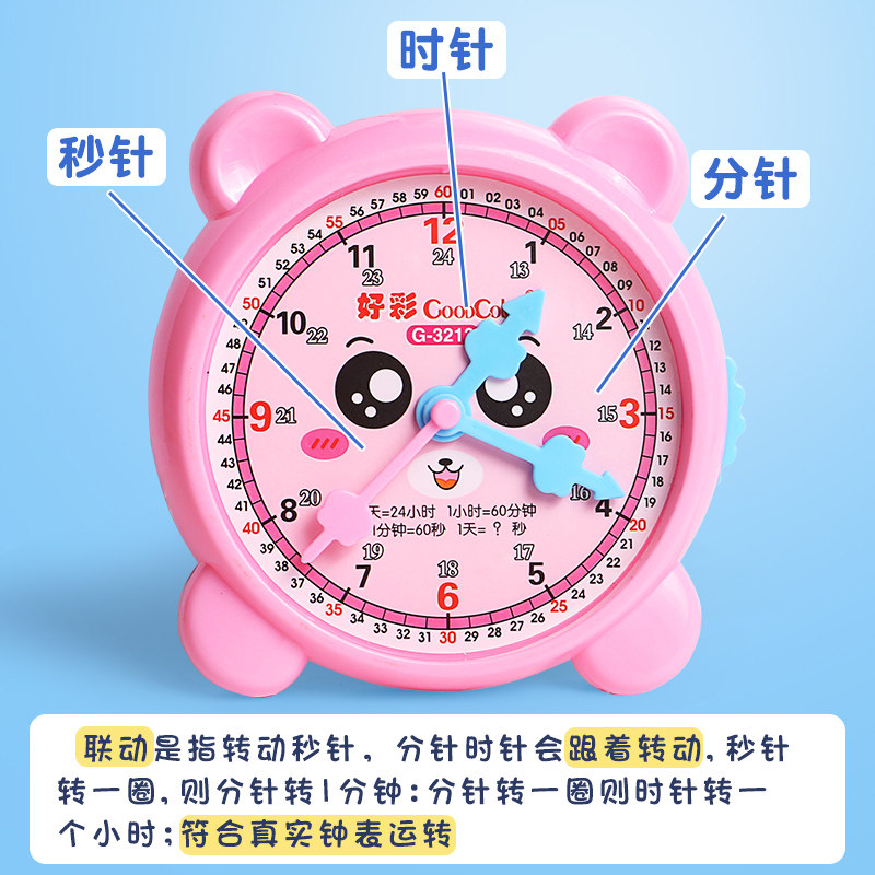 教学用具时间认知钟表模型小学教具时钟学具数学表盘儿童一二年级学习认识三针联动计数器分针手动钟面开学