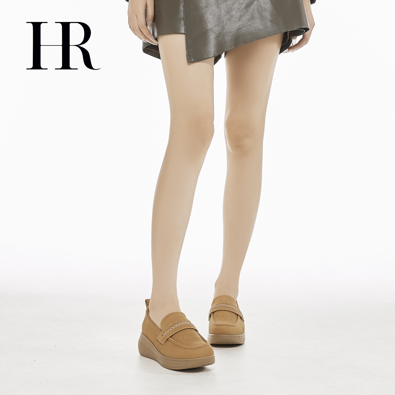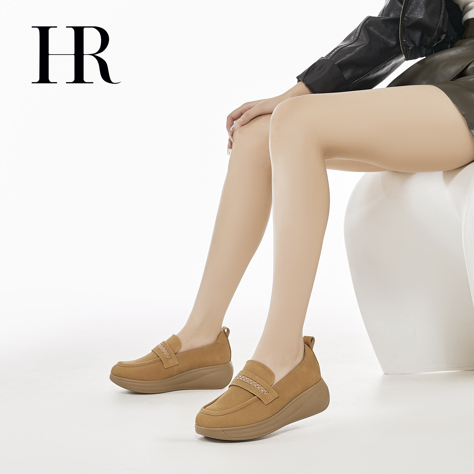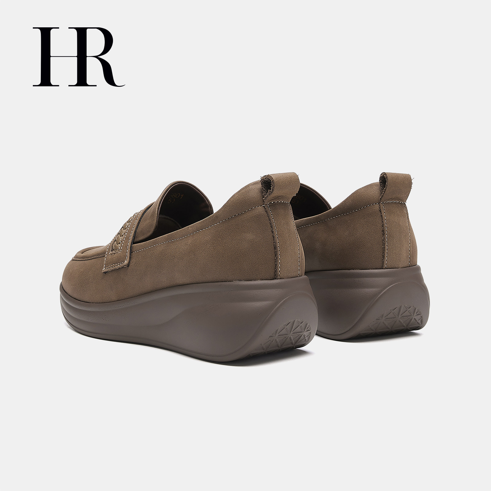 HR赫莲娜女鞋子2026年春季新款乐福鞋坡跟运动舒适软底不累脚单鞋