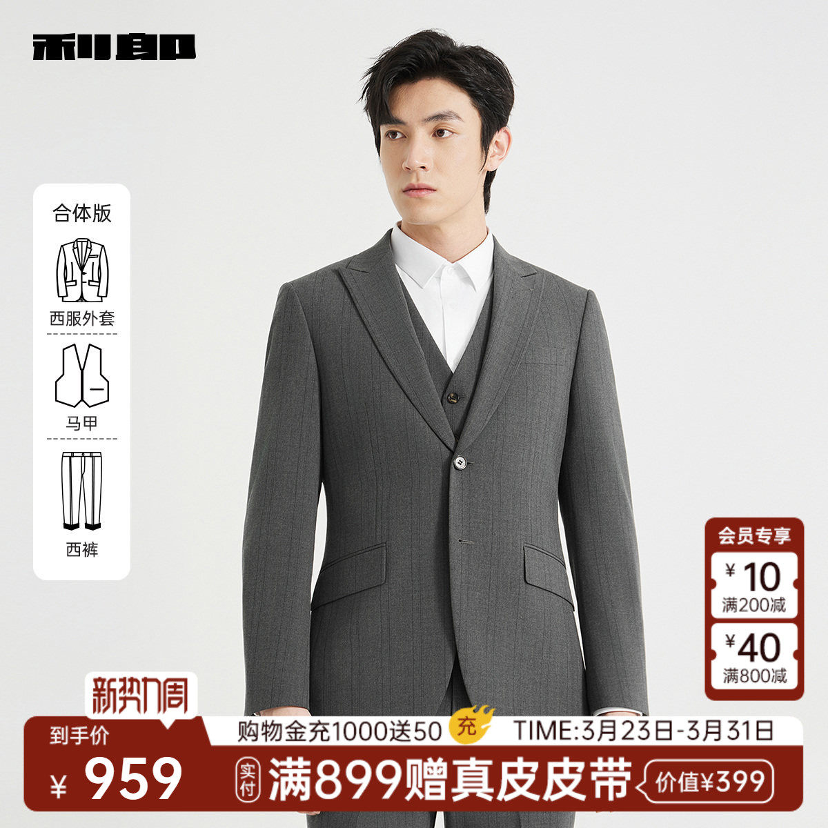 【含马甲三件套】利郎官方西服套装男士新郎结婚商务男装西装正装