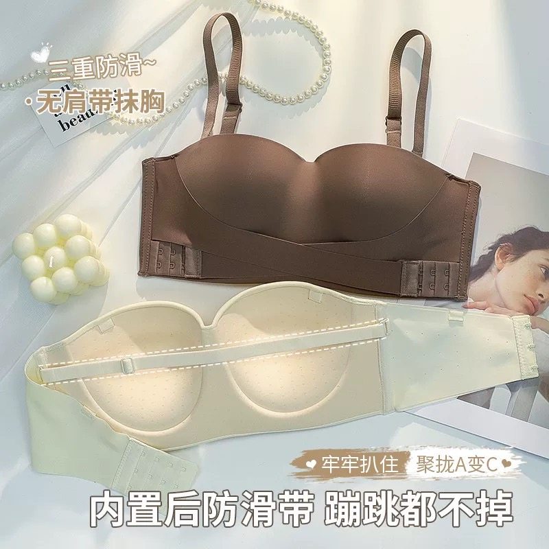 无肩带内衣女防滑聚拢小胸裹抹胸吊带隐形美背文胸罩防走光收副乳