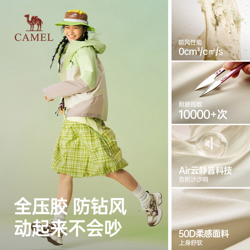 骆驼女装单层冲锋衣2025新款秋冬户外防风防水连帽立领男女款外套