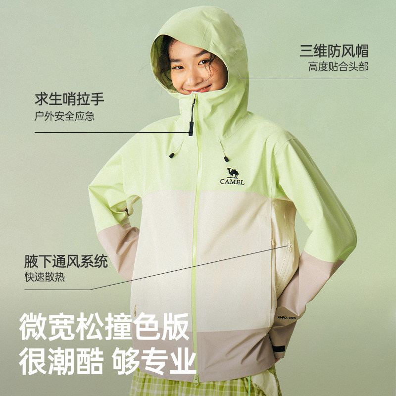骆驼女装机能撞色硬壳冲锋衣2026春夏新款户外防风防水休闲外套男