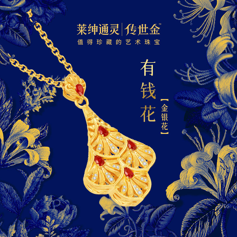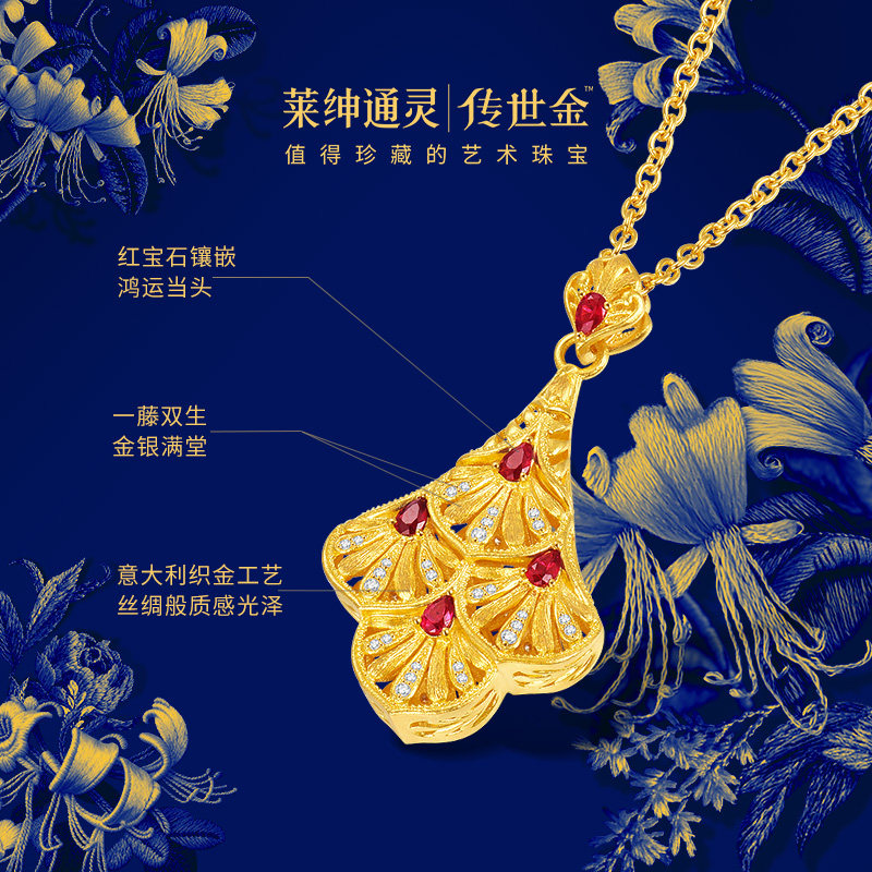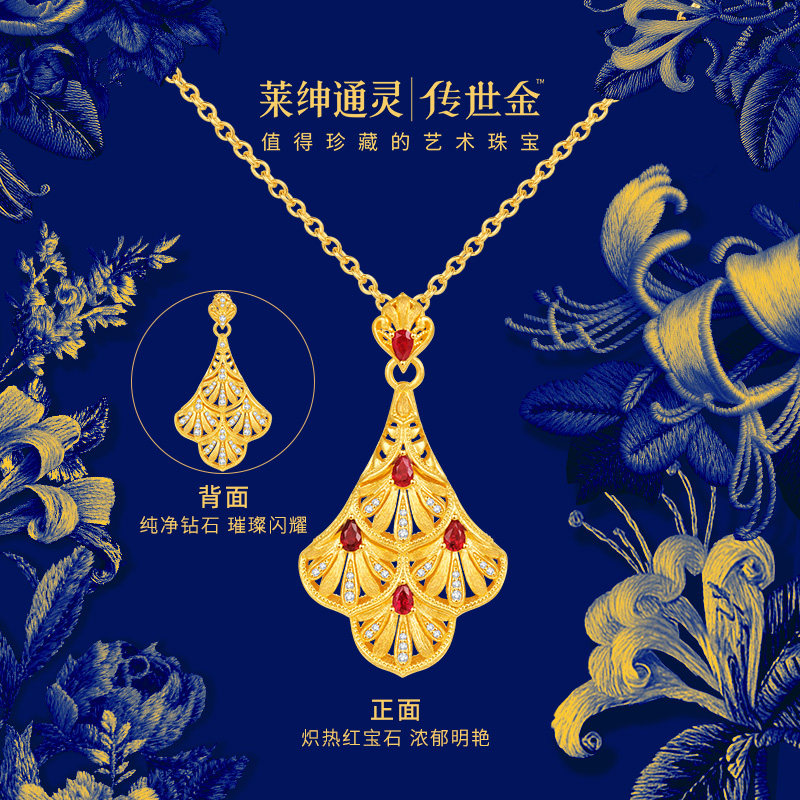【商场同款】莱绅通灵 盛世繁花金银花 足金黄金红宝石钻石项链