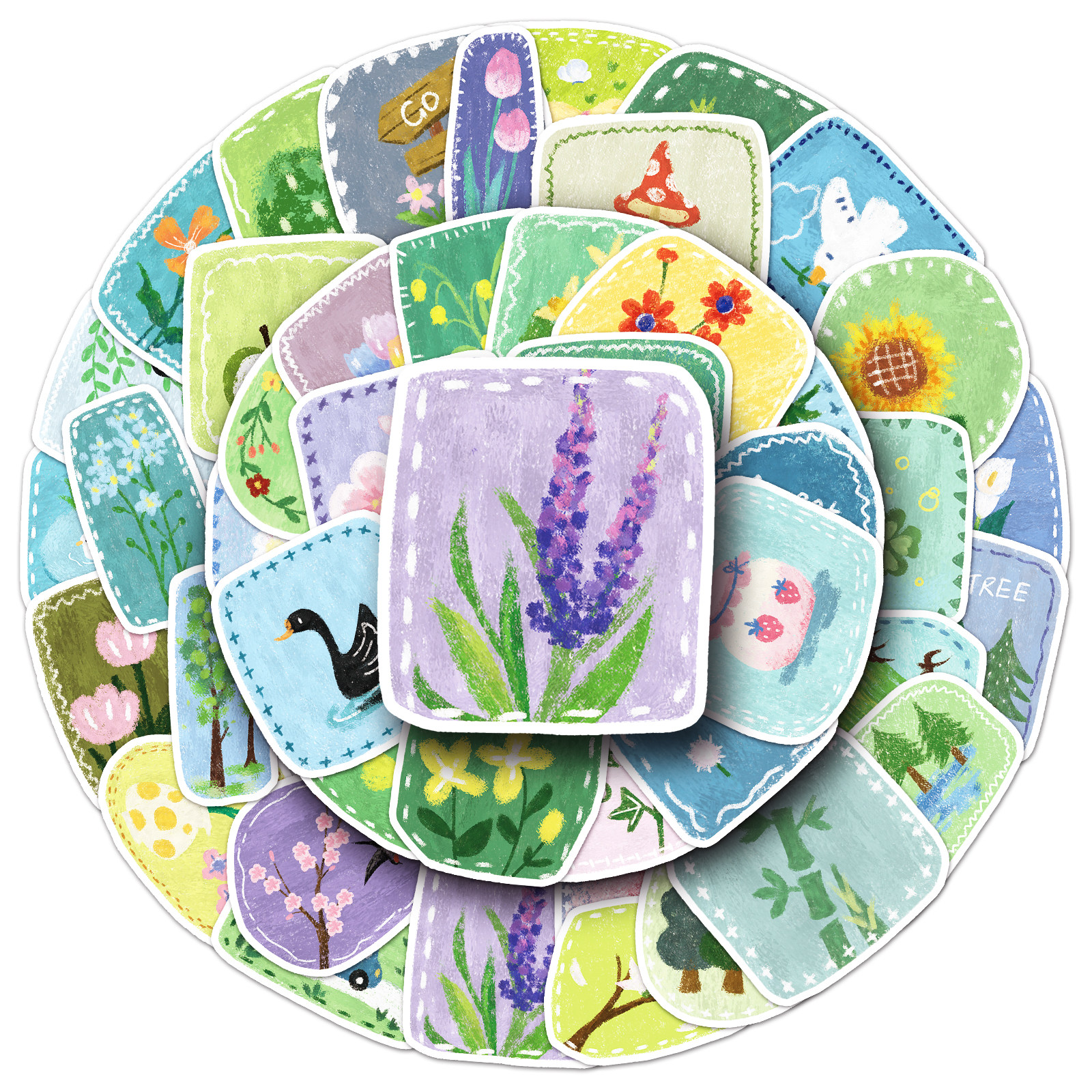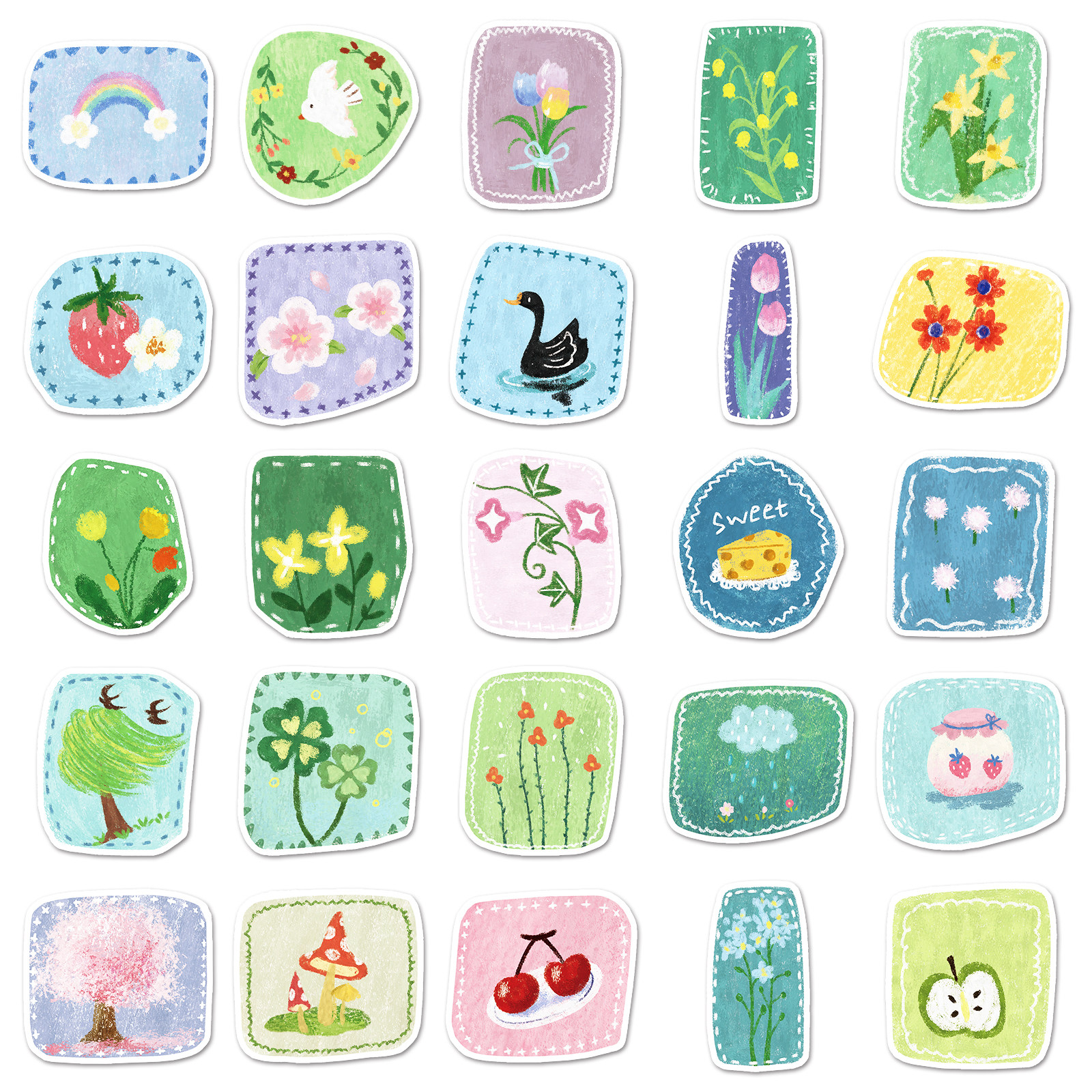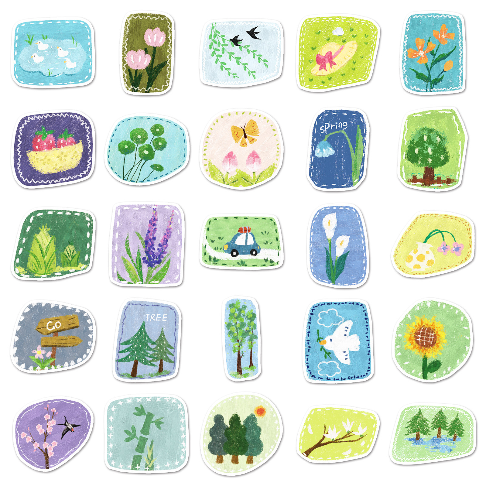 100张春日小清新贴画可爱手绘ins治愈系手帐素材防水涂鸦装饰原创不侵权行李箱水杯日记衣柜滑板车手机壳贴纸