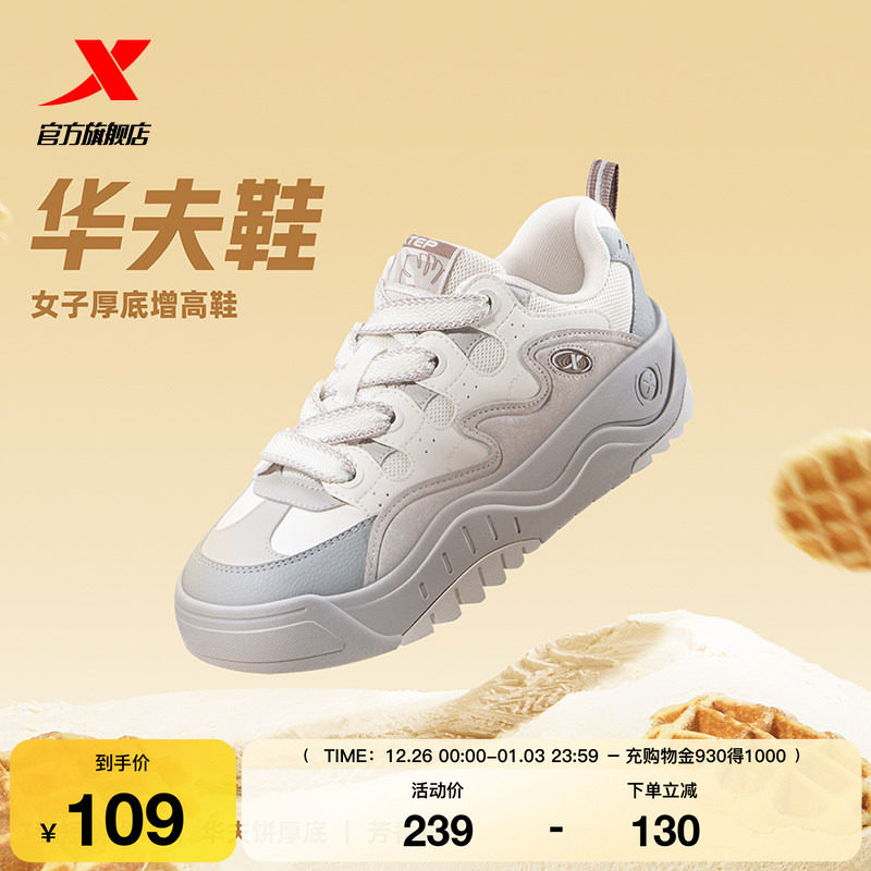 特步华夫鞋冬季新款潮流板鞋户外鞋百搭休闲鞋厚底增高女鞋运动鞋