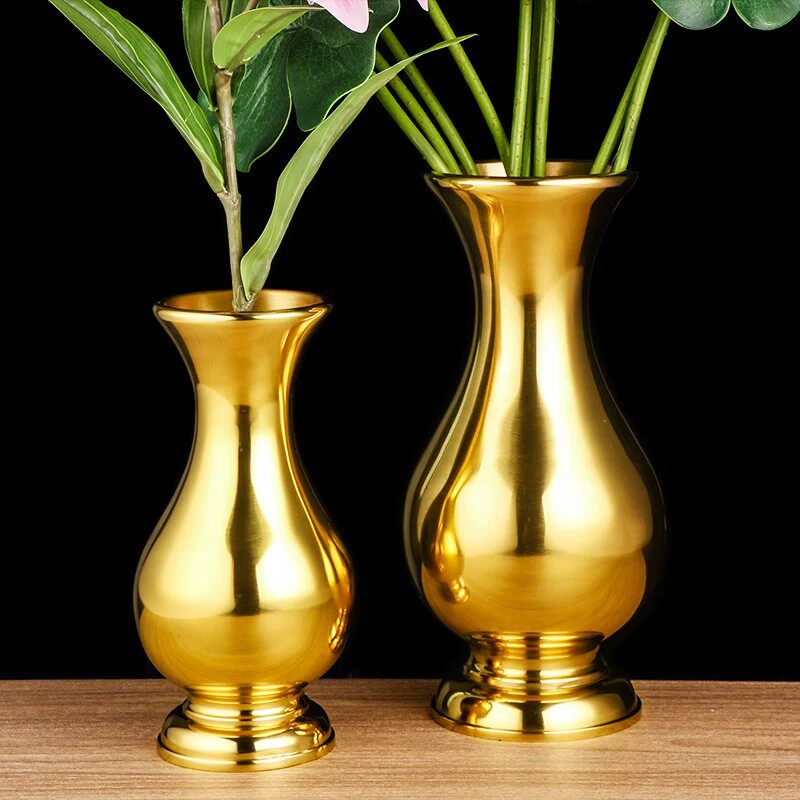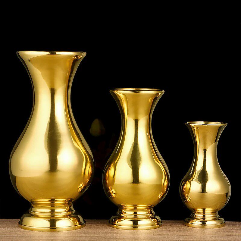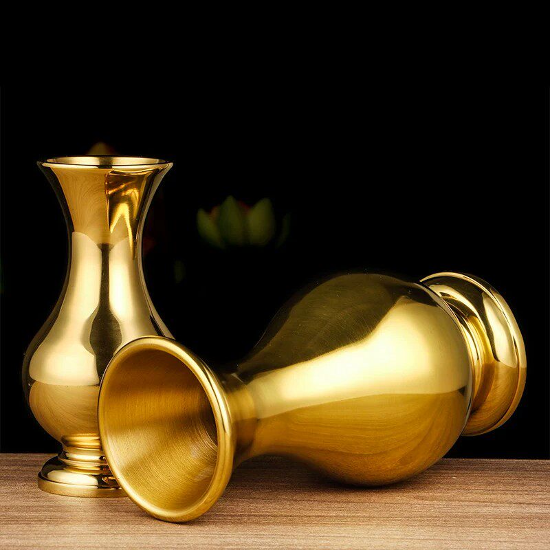 纯黄铜光身素面观音花瓶供佛净水瓶佛堂供具插花摆件客厅