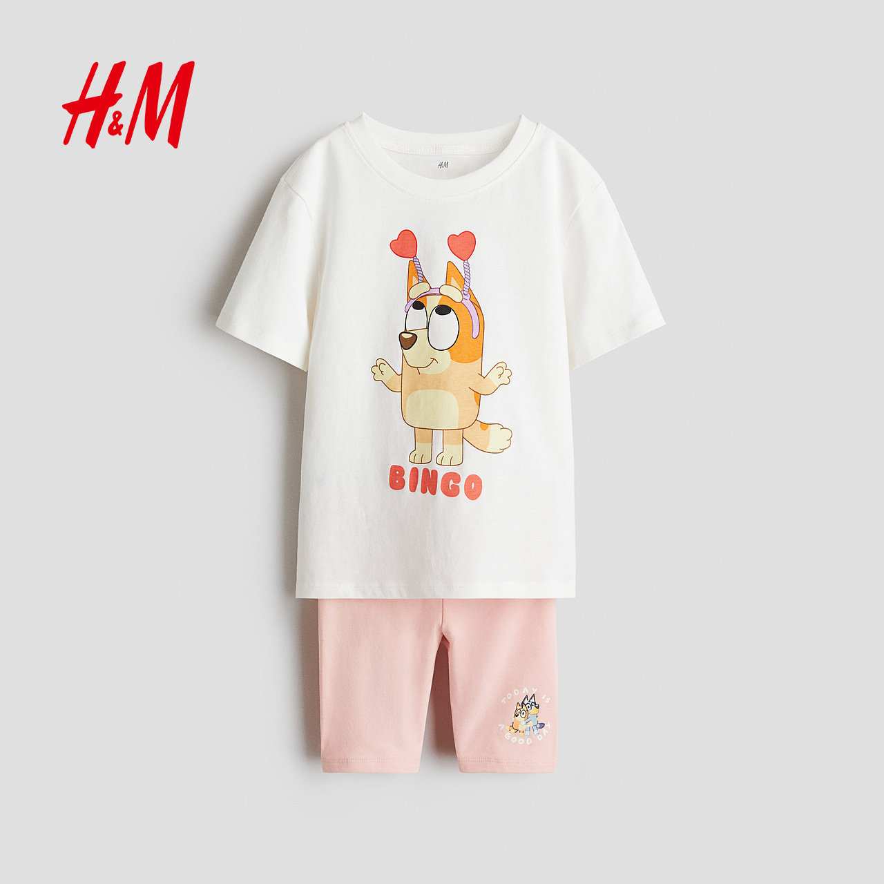 【布鲁伊】HM童装儿童女童套装2件式印花宽松圆领短袖短裤1073066