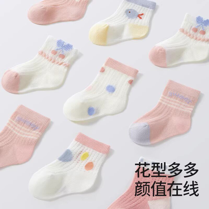 儿童袜子夏季棉袜透气新生儿宝宝中筒袜婴儿袜子夏薄款女童软花边