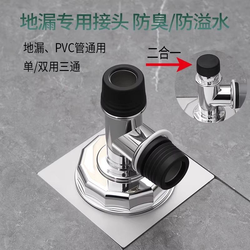 洗衣机地漏专用接头下水排水管道防反溢水二合一三通方形地漏盖子