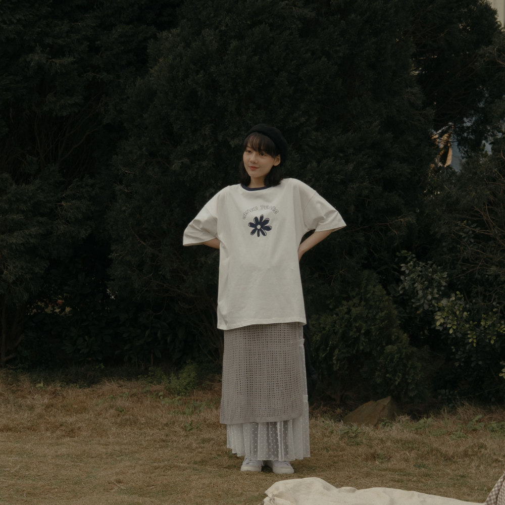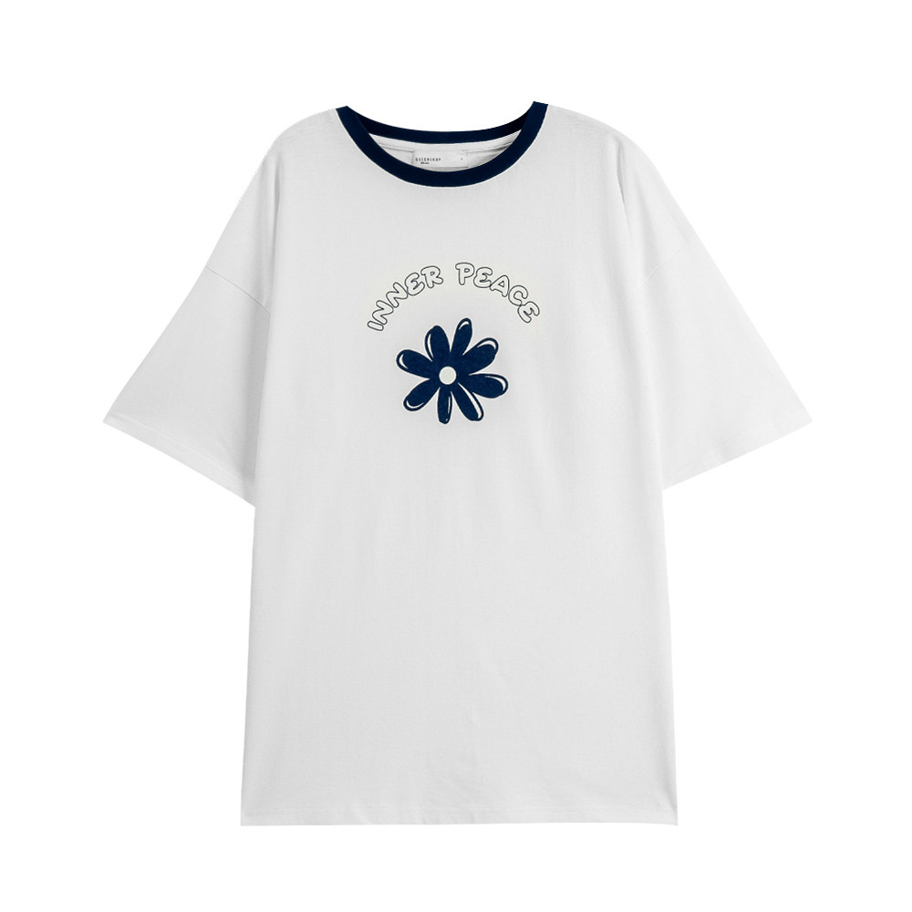 QUEENSHOP 2025秋冬新品女装撞色小花印图剪接宽版上衣01190206