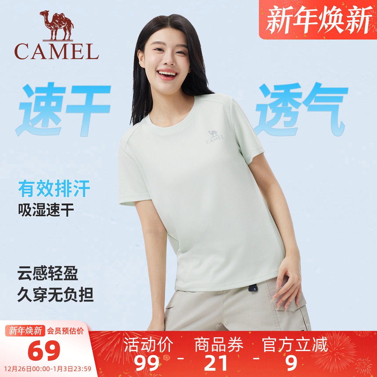 骆驼女装速干衣短袖T恤薄款夏圆领透气吸汗跑步健身运动休闲上衣