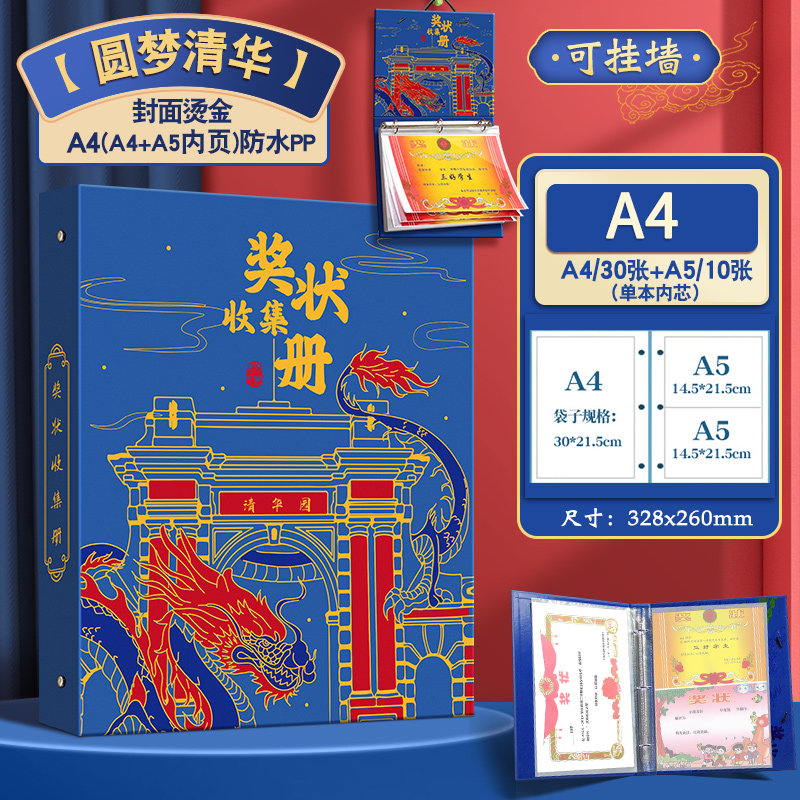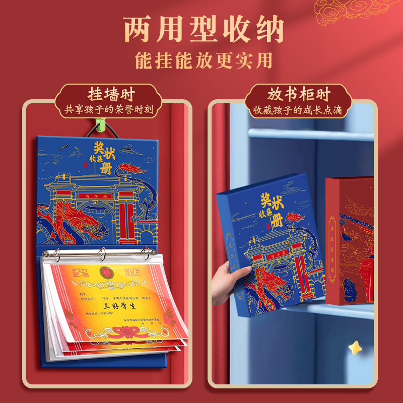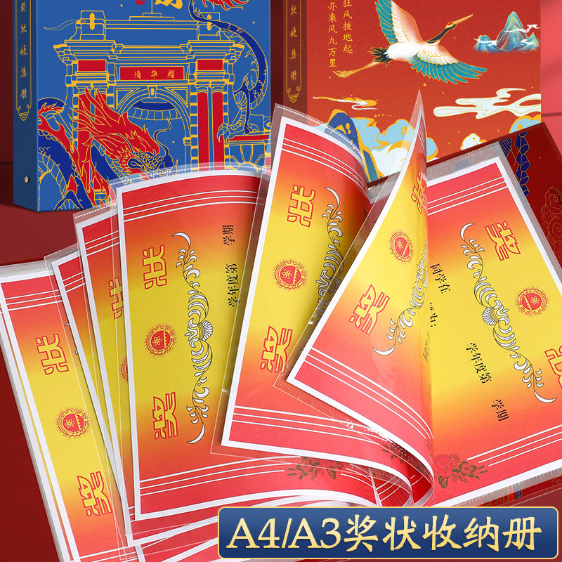 奖状收集册2025新款可挂墙中国风a3活页a4荣誉作品收藏册男孩女孩收纳册儿童证书整理神器收纳袋相册本小学生