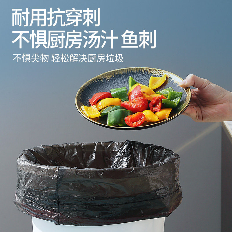 手提式抽绳垃圾袋家用加厚实惠批发装厨房黑色大号垃圾袋
