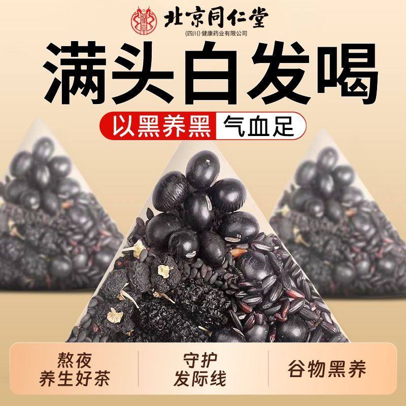 北京同仁堂桑椹五黑茶五黑组合调养秀发润色便捷泡饮养生160g养发