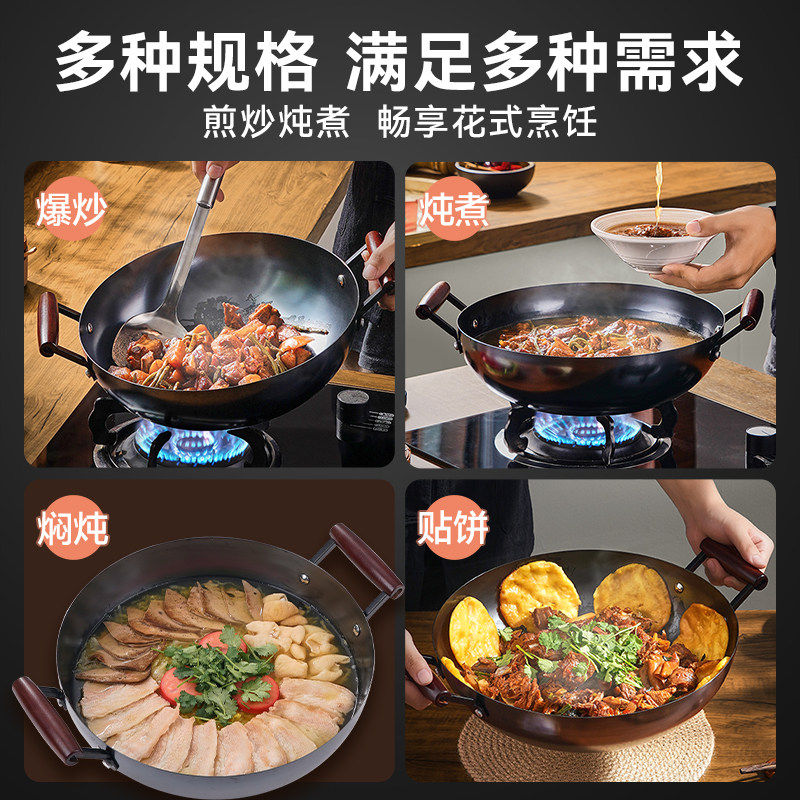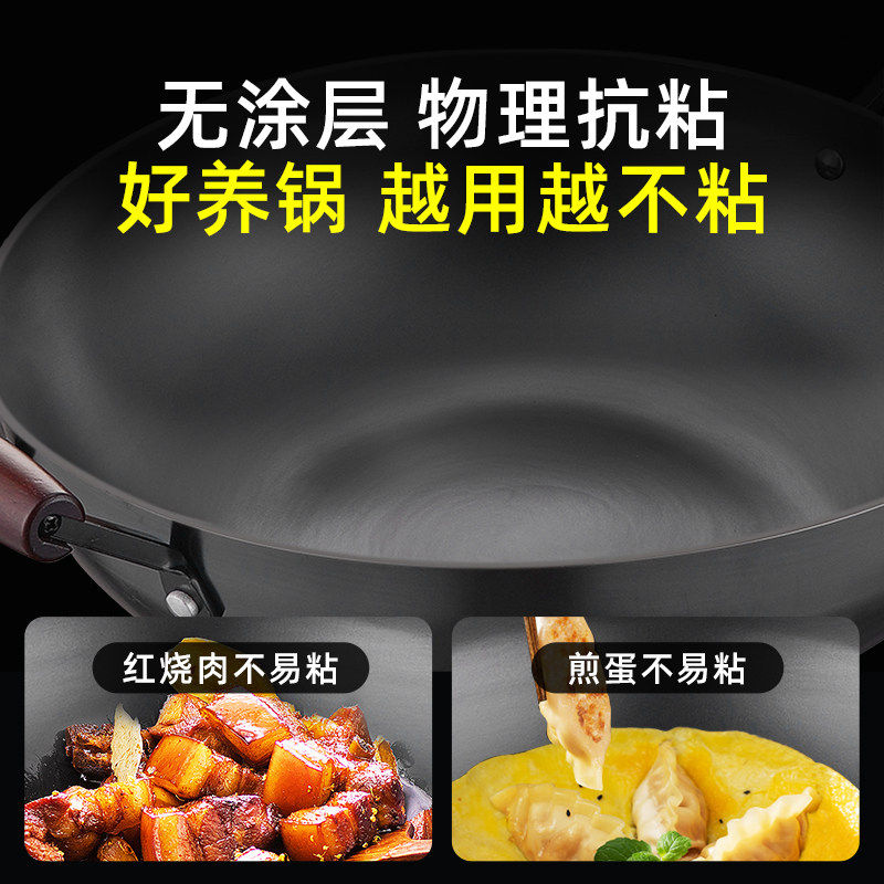 章丘炒菜锅传统铁锅官方旗舰老式炒锅家用不粘锅无涂层燃气灶适用