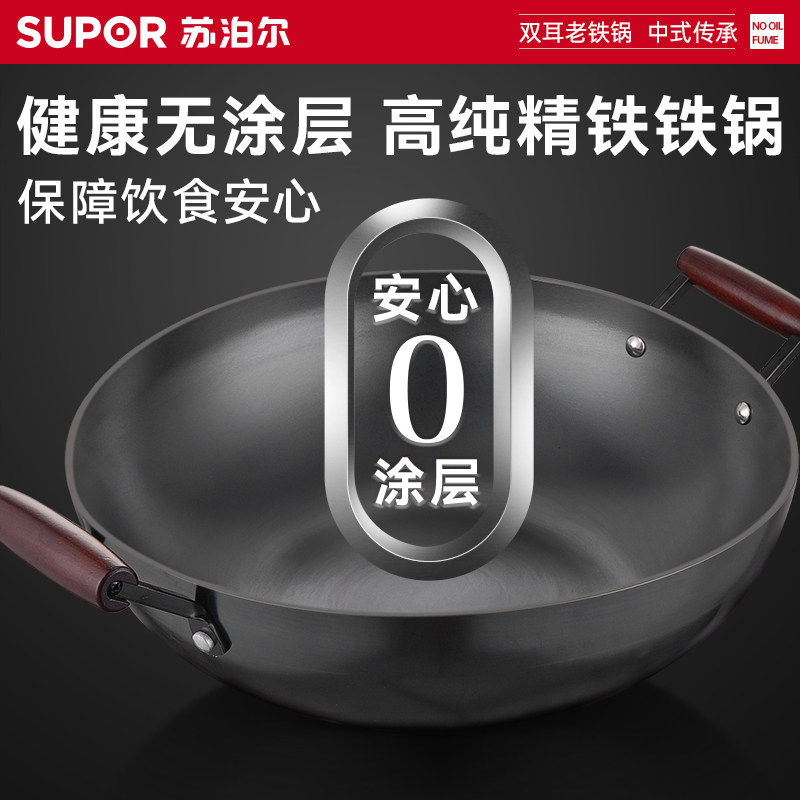 苏泊尔双耳铁锅炖一体锅炒菜锅家用老式无涂层炒锅电磁炉燃气灶用