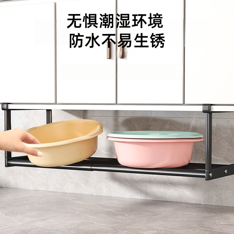 洗脸盆置物架浴室柜下挂篮可伸缩免打孔收纳架卫生间杂物分层隔板
