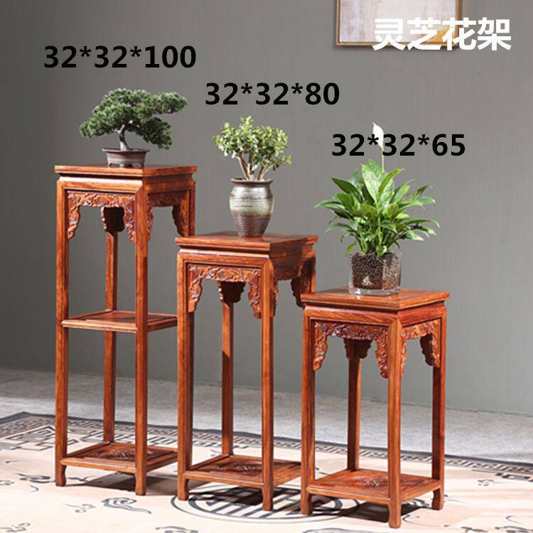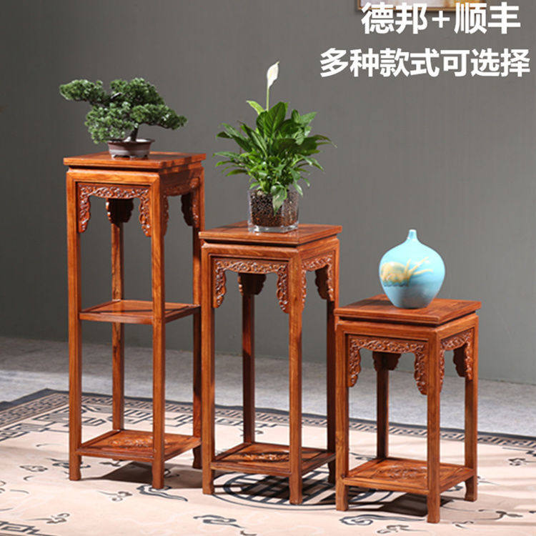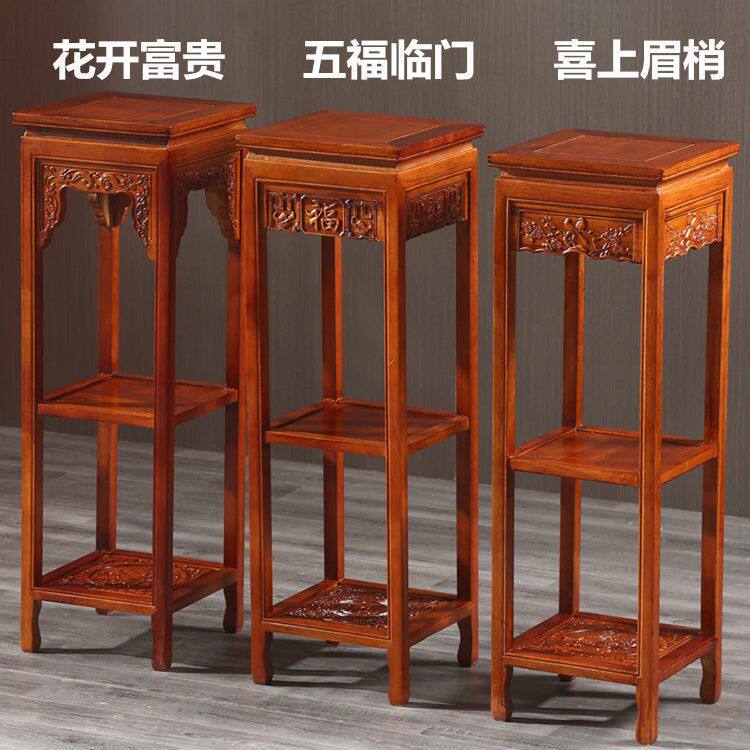红木架鸡翅木梨木单个多层客厅中式几四方盆景架子家用