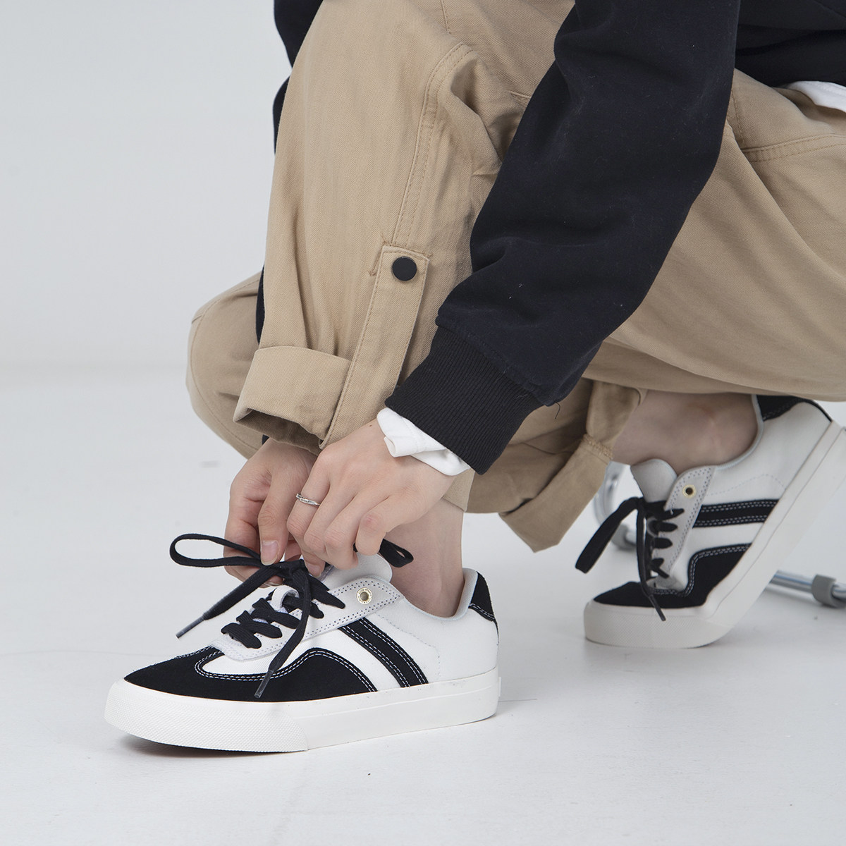顽刻官方黑白德训专业帆布翻毛皮拼接低帮情侣耐磨减震硫化板鞋合