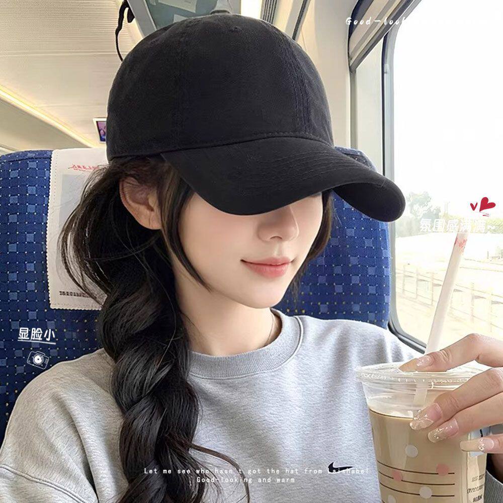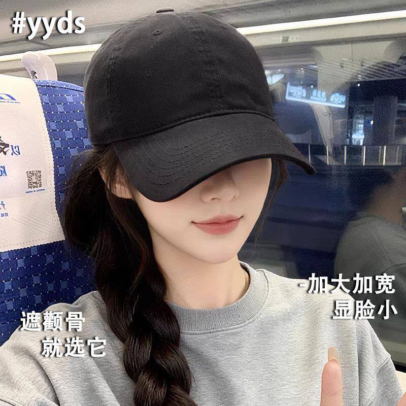 鸭舌帽女2026新款黑色显脸小棒球帽宽帽檐大头围帽子圆脸灰色红色