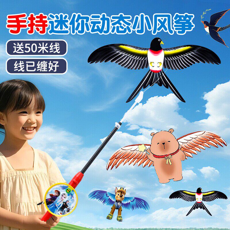 鱼竿儿童风筝手持动态迷你新款易飞户外亲子玩具蝴蝶微风燕子互动
