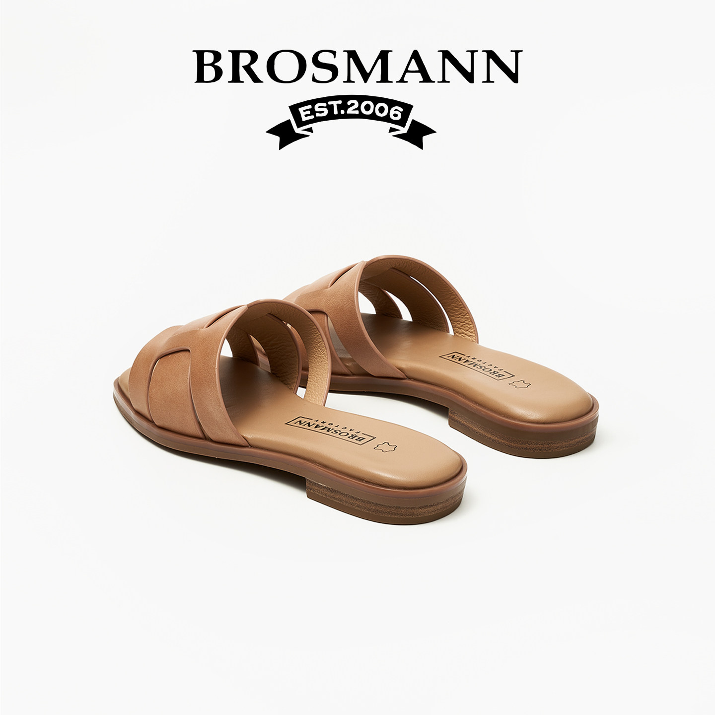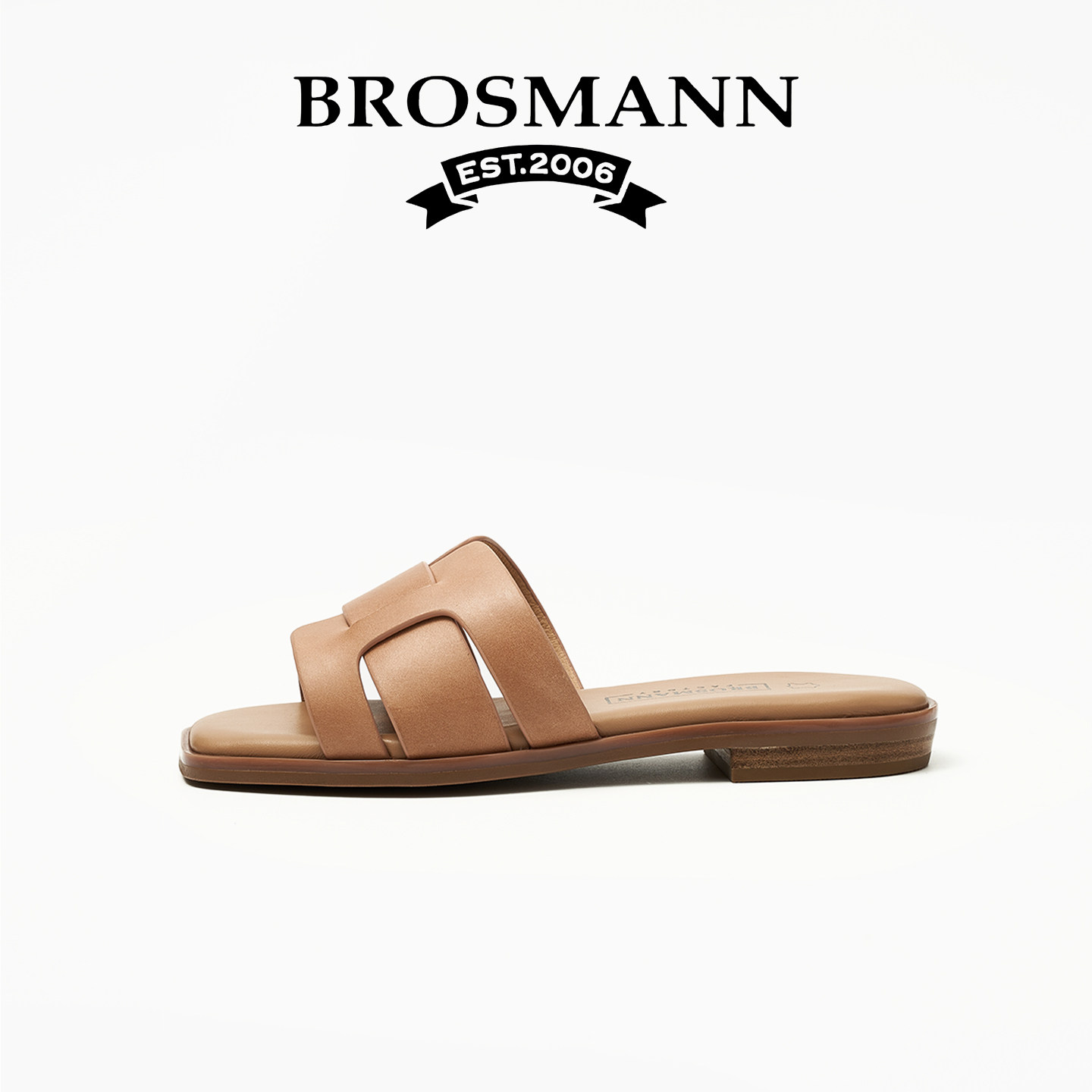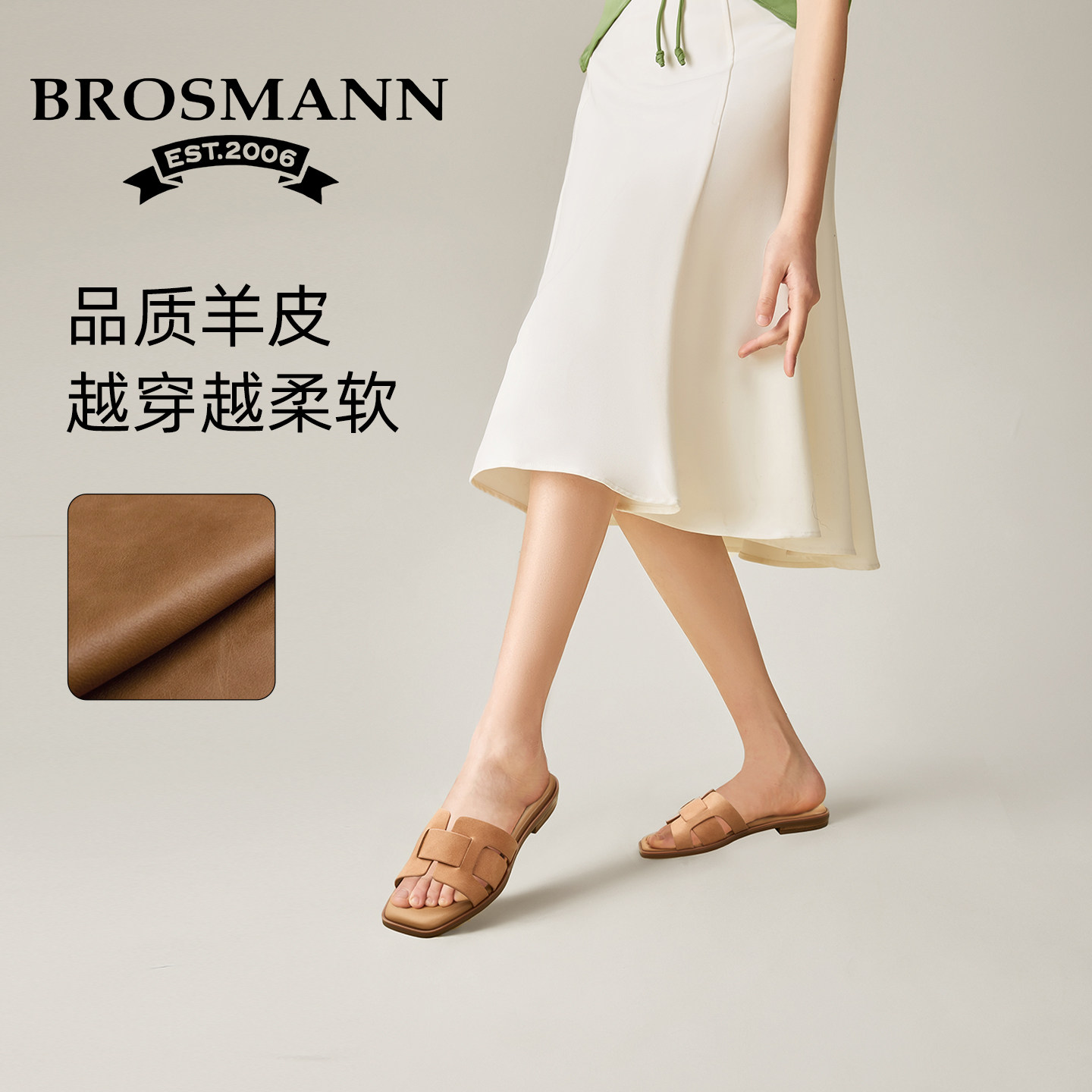 宝舒曼真皮拖鞋女外穿夏季新款软底凉鞋牛皮女鞋度假风平底凉拖