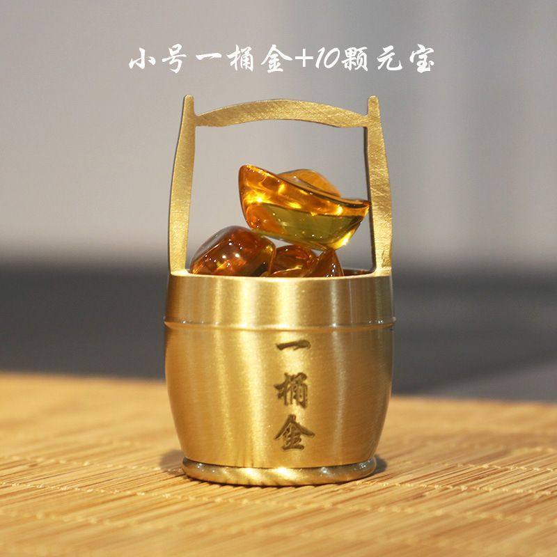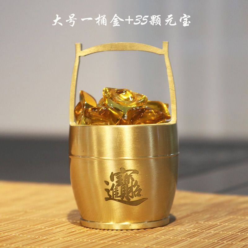黄铜一桶金江山水桶招财摆放客厅办公室米缸聚宝盆家居铜摆件元宝