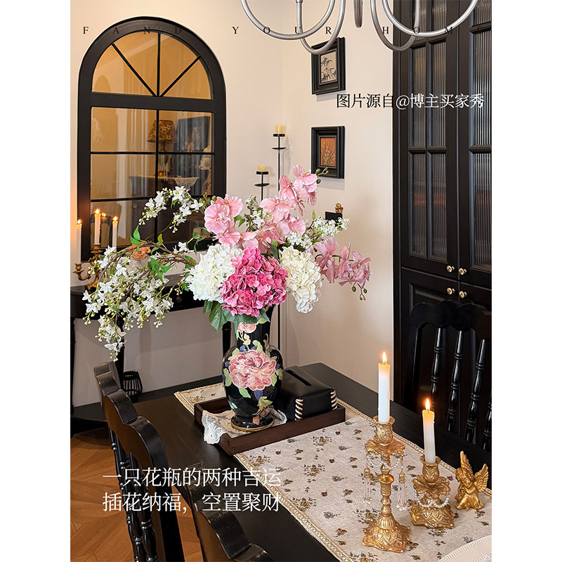 高级黑金复古手绘陶瓷花瓶摆件礼物