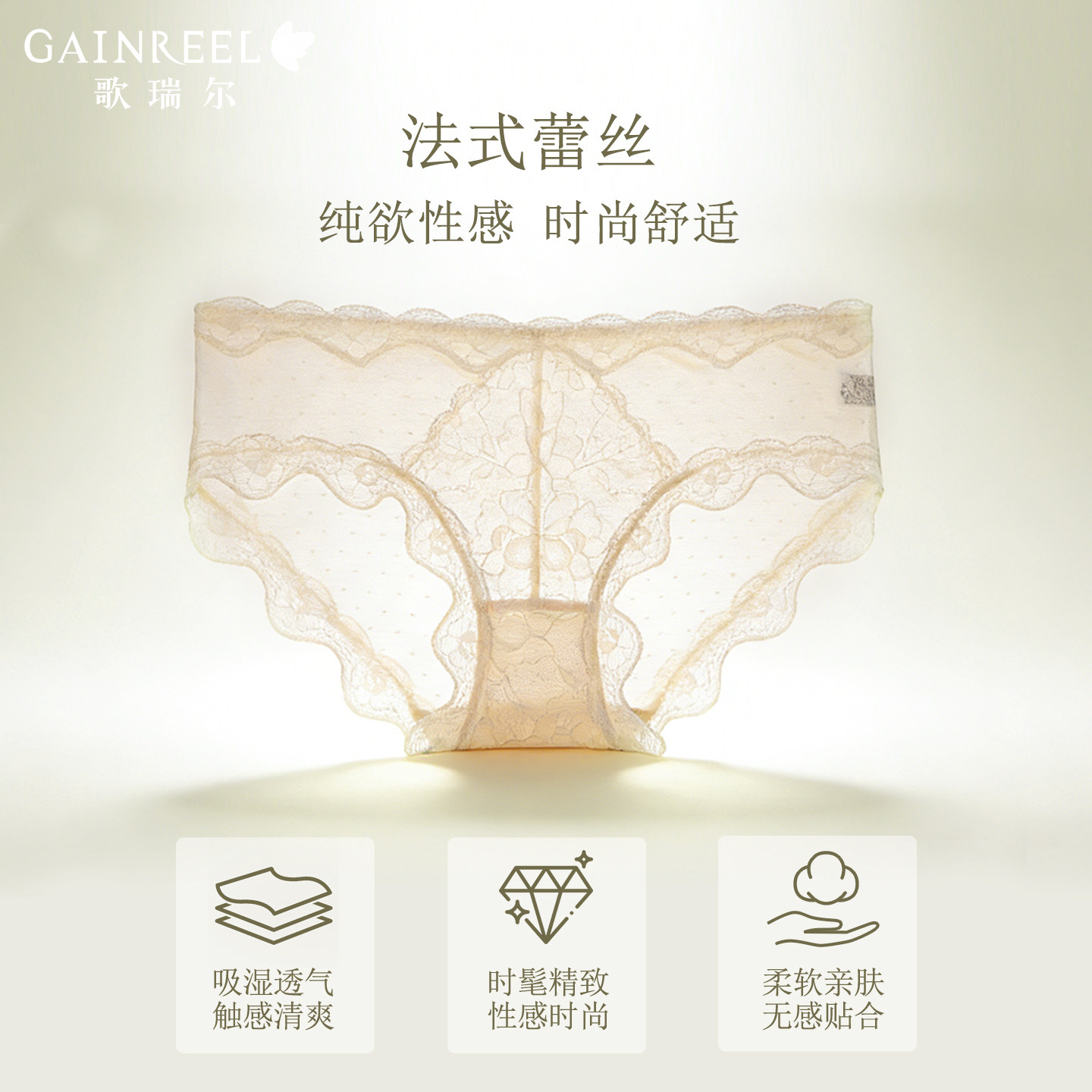 歌瑞尔2026新款蕾丝内裤女款高档棉质裆裸感透气低腰不夹臀三角裤