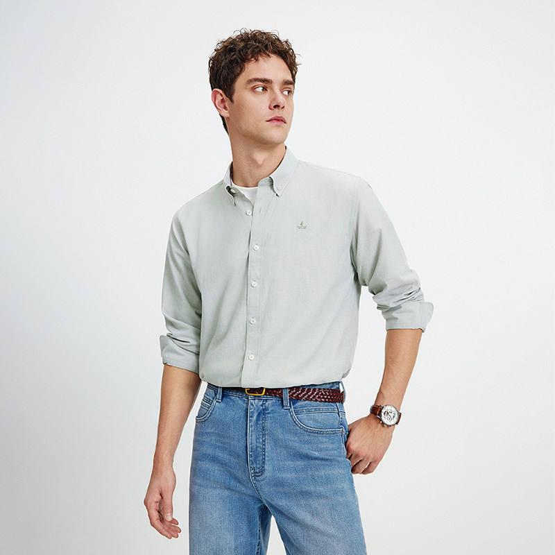 王安宇同款森马长袖衬衫男纯棉2025春秋新款通勤休闲上衣商务衬衣