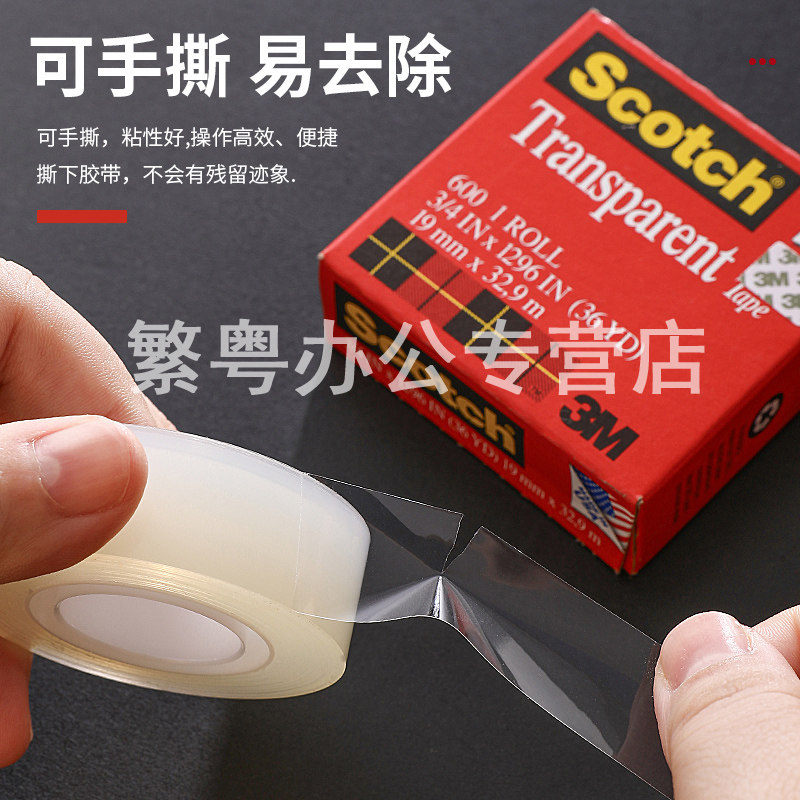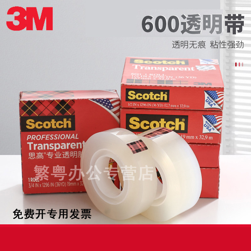 3M思高Scotch百格测试胶带透明胶带附着力测试胶带600-3/4 19mm*32.9m胶纸12.7mm scotch 透明胶带
