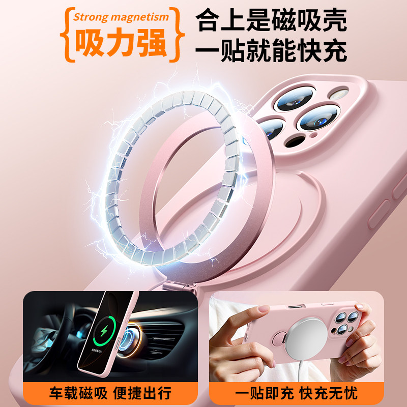 新款液态硅胶360支点适用苹果16手机壳iphone15promax时尚情侣高级感磁吸魔方带支架挂绳13p保护套全包防摔