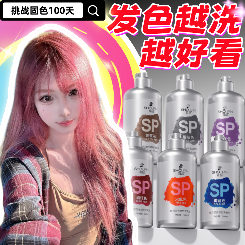 固色洗发水护色锁色专用洗头水露膏奶茶灰粉棕灰棕树莓红橘色持久