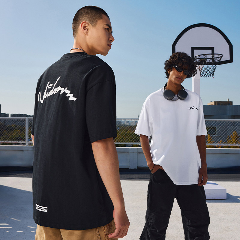 维动线迹短袖男篮球运动针织美式圆领T恤衫棉宽松休闲半袖夏季V