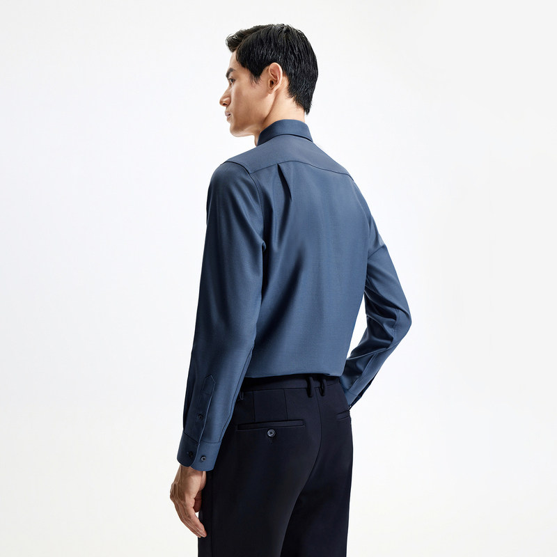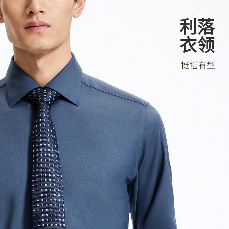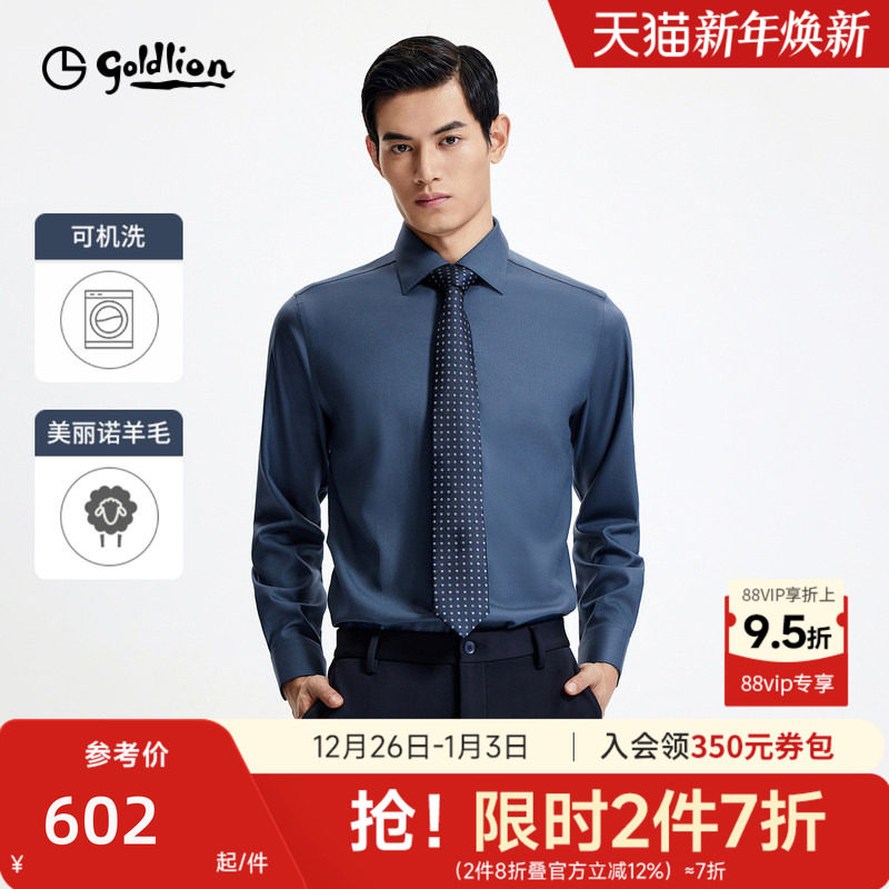 【50%可机洗羊毛】金利来秋冬男士衬衫纯色弹力易打理长袖衬衣男