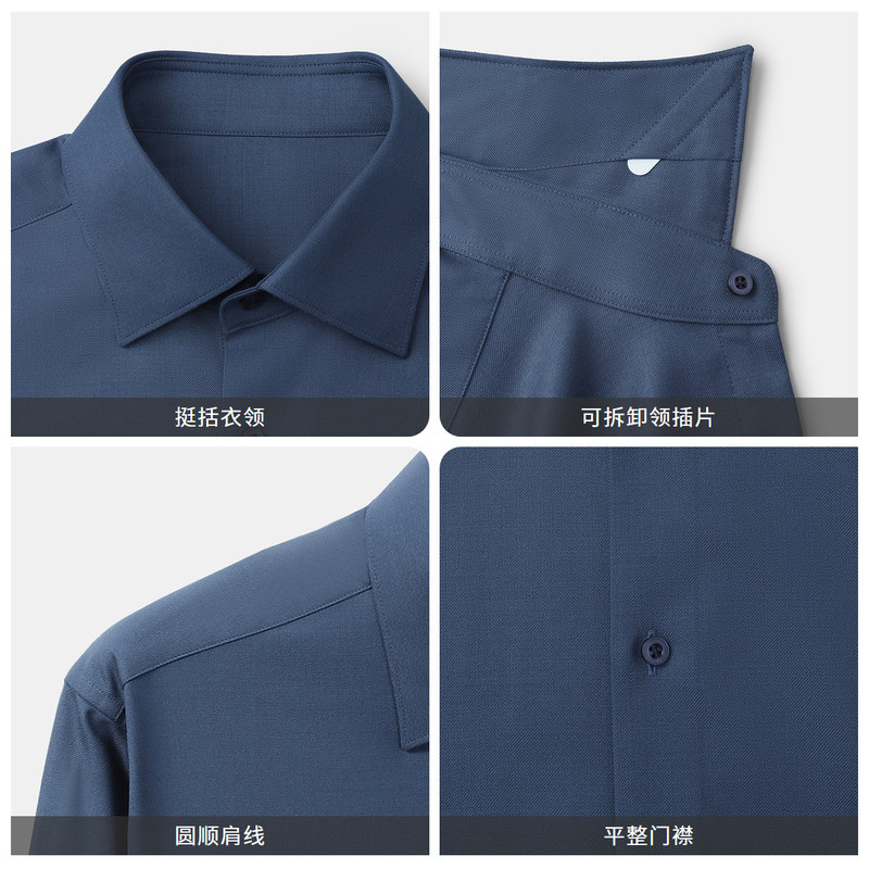 七多男士衬衫修身韩版秋季商务免烫纯色衬衣职业正装白衬衫男长袖