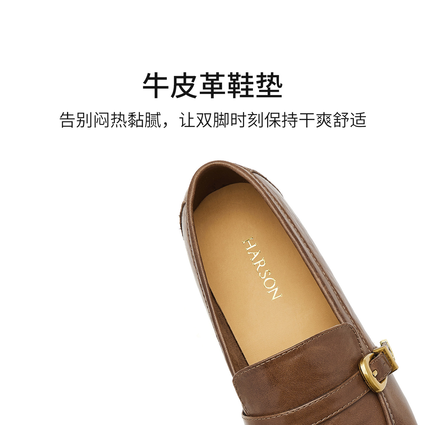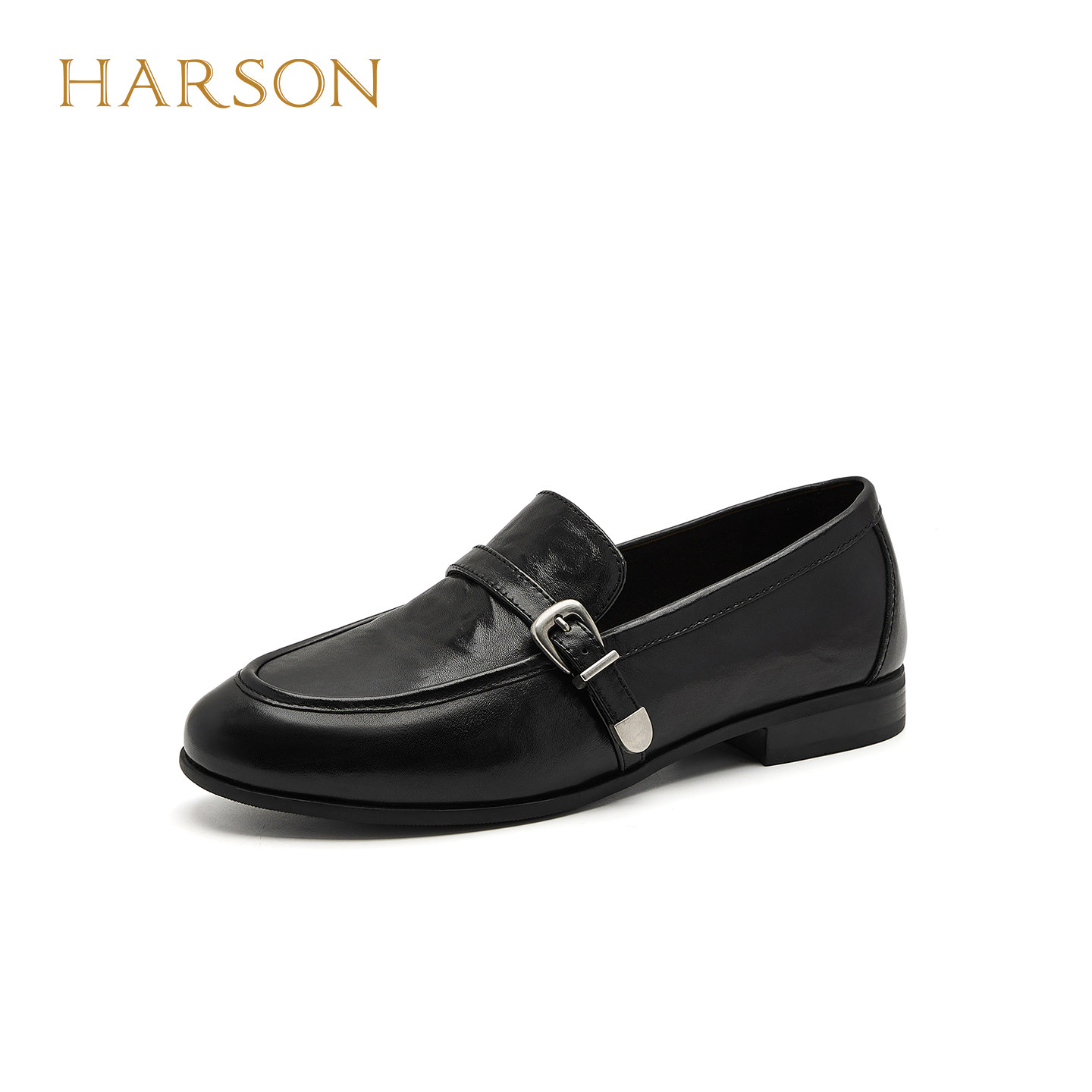 哈森英伦风真皮乐福鞋女鞋金属扣百搭舒适豆豆鞋2026新款HS262813