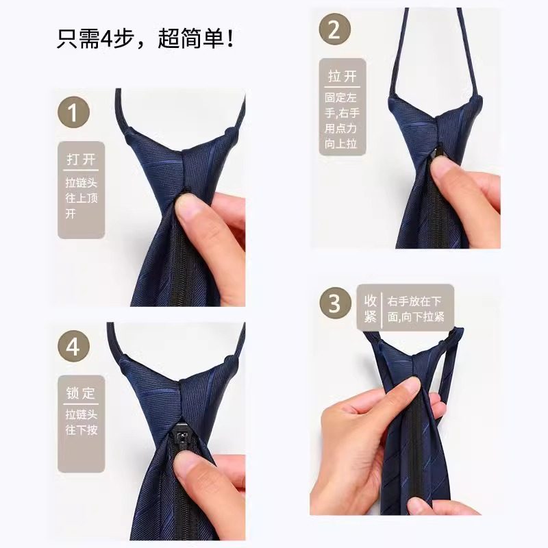 窄领带男女正装结婚新郎男士商务蓝色免打西装衬衫手打黑色拉链头