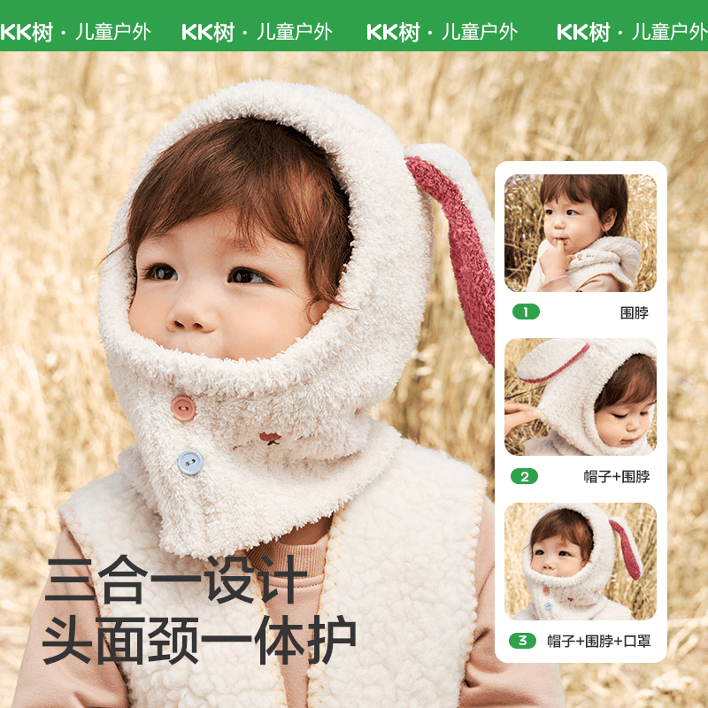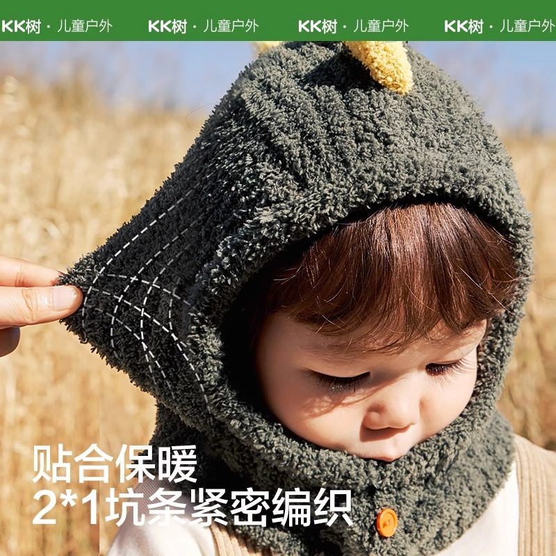 KK树儿童帽子男女孩秋冬季宝宝围巾一体帽防风毛线套头帽护耳保暖
