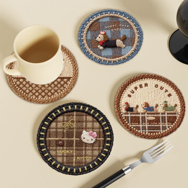 INS风手工编织纹路立体效果编织纹路隔热杯垫餐垫锅垫桌垫防烫