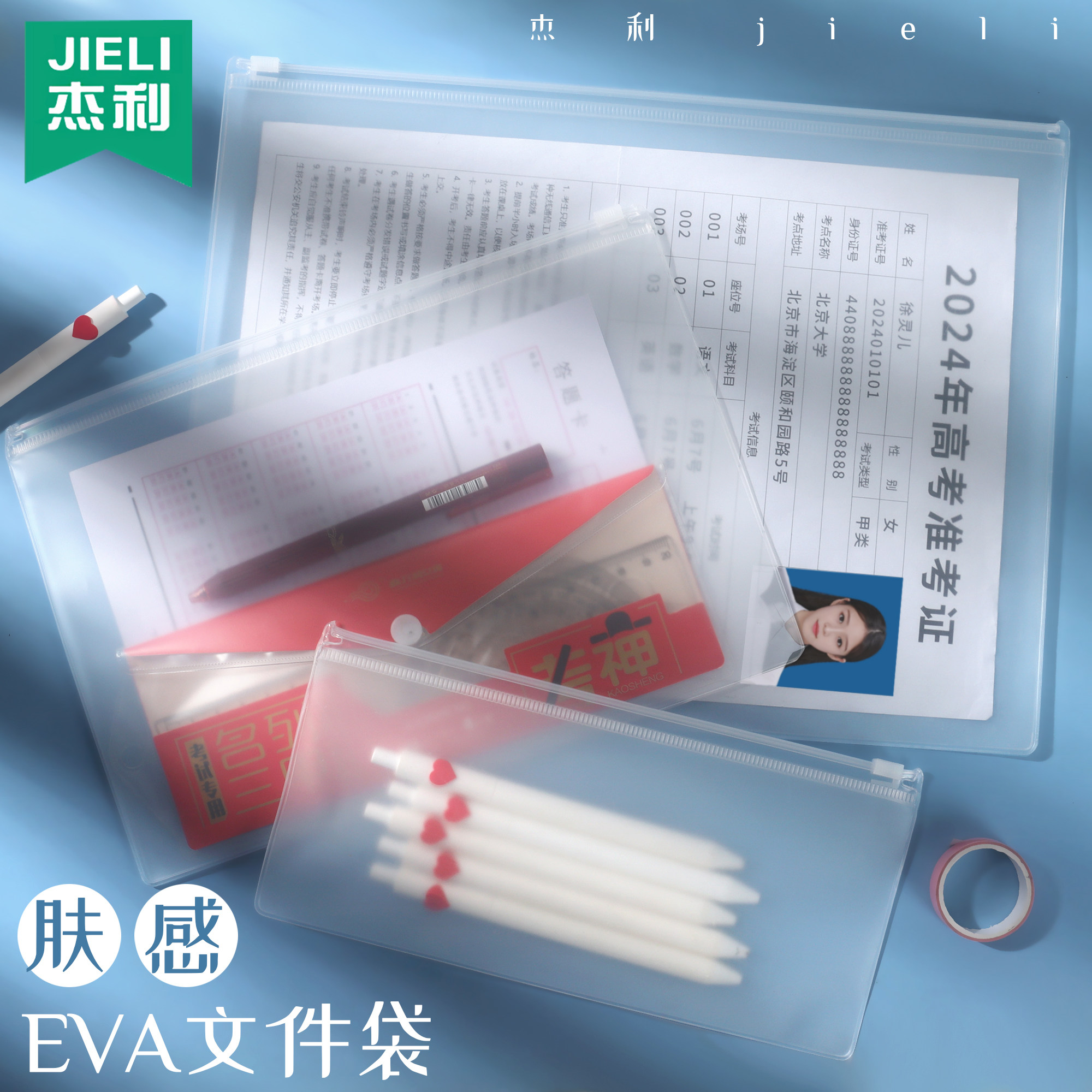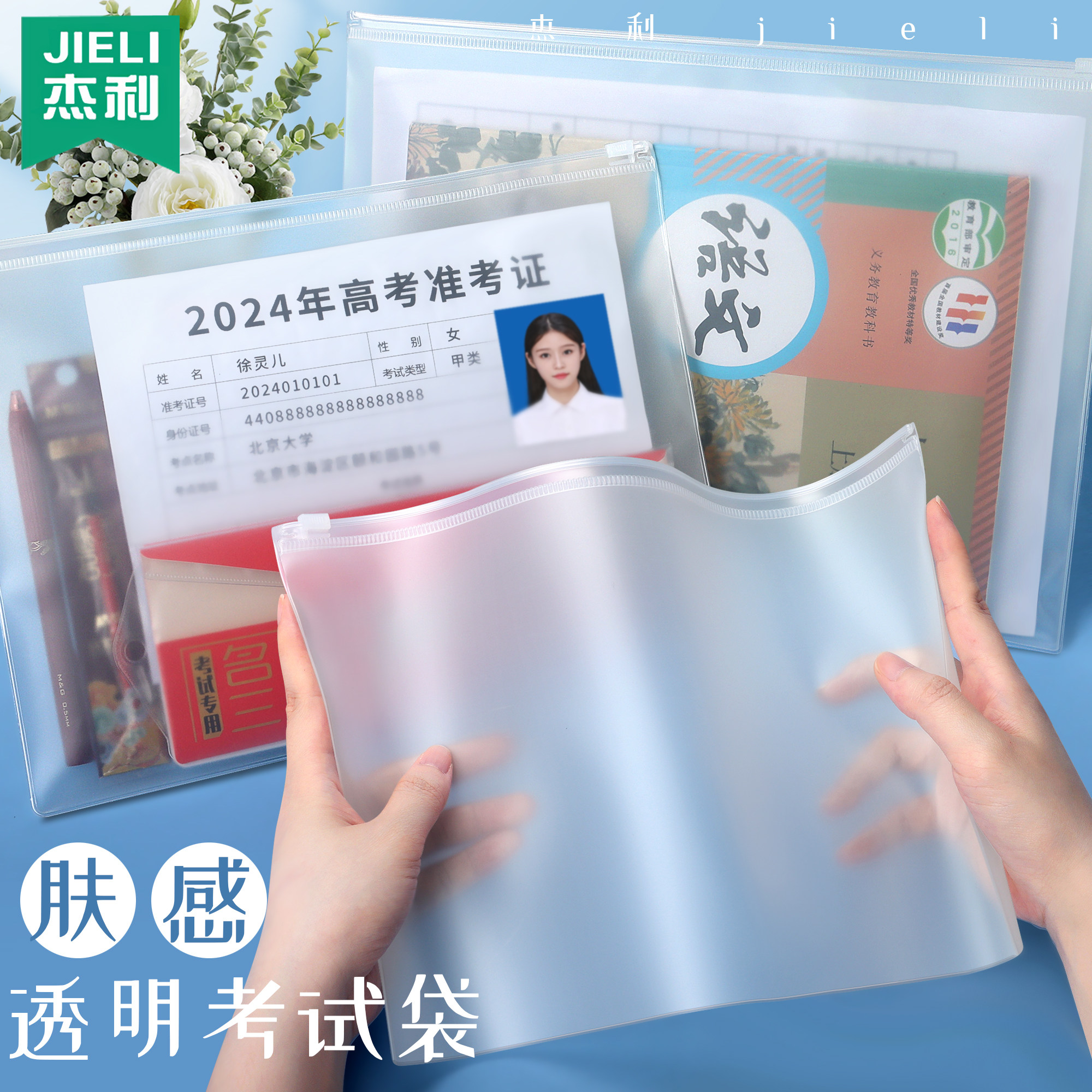 杰利考试袋考试专用袋子透明文具袋无金属塑料笔袋中考高考专用透明袋a4文件袋EVA防水拉边袋试卷拉链收纳袋